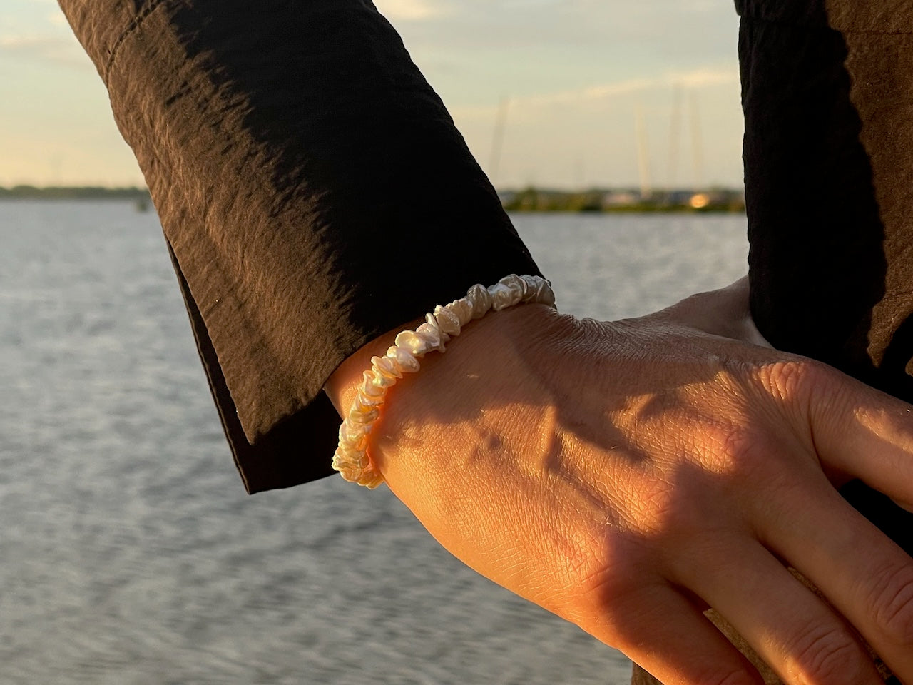 Jede Perle ist anders geformt. Diese Besonderheit verleiht dem Armband seinen außergewöhnlichen Charakter und setzt ein Statement für Individualität und Eleganz.