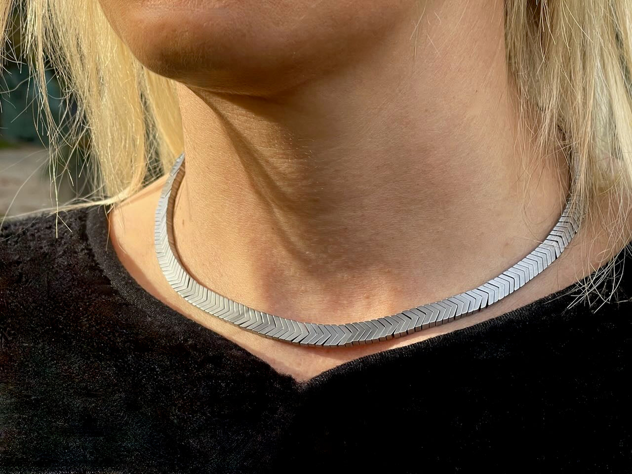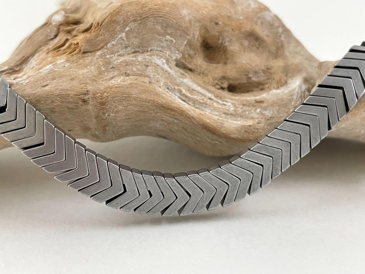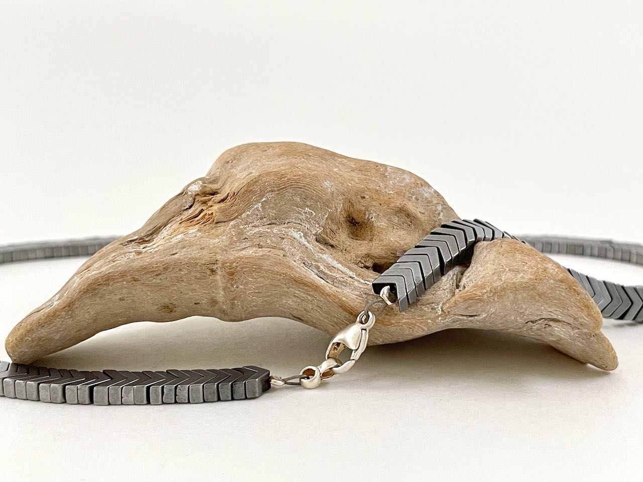 Steinchen vom silber-matten Hämatit legen sich wie ein Band um den Hals. Ein dezentes und edles Schmuckstück, dass deinen Stil unterstreicht. Das Schmuckstück passt zu jedem Outfit!
