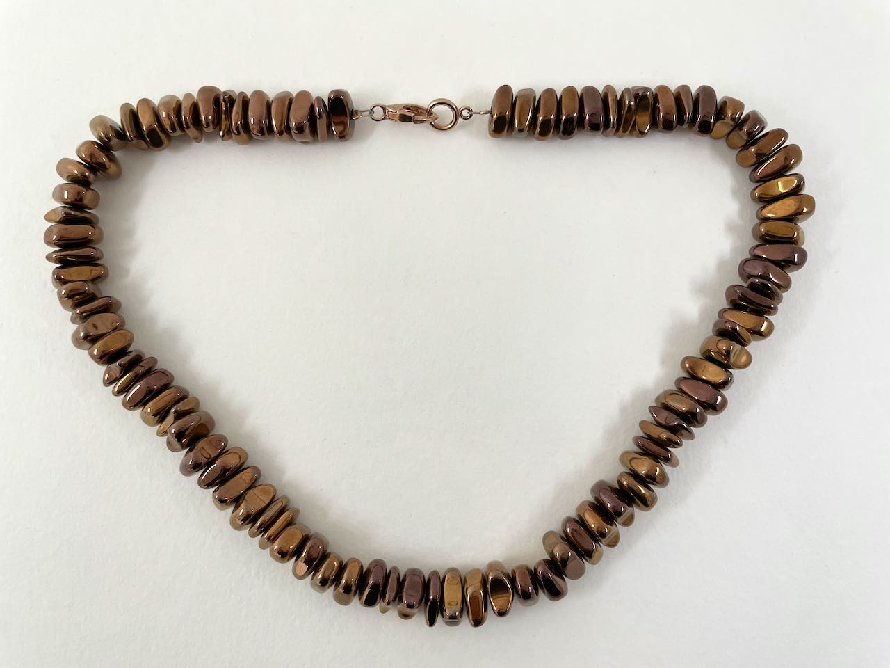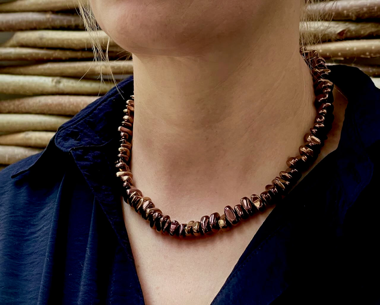 Halskette aus kupferfarbenen, glänzenden Steinen - Steinkette Carolina