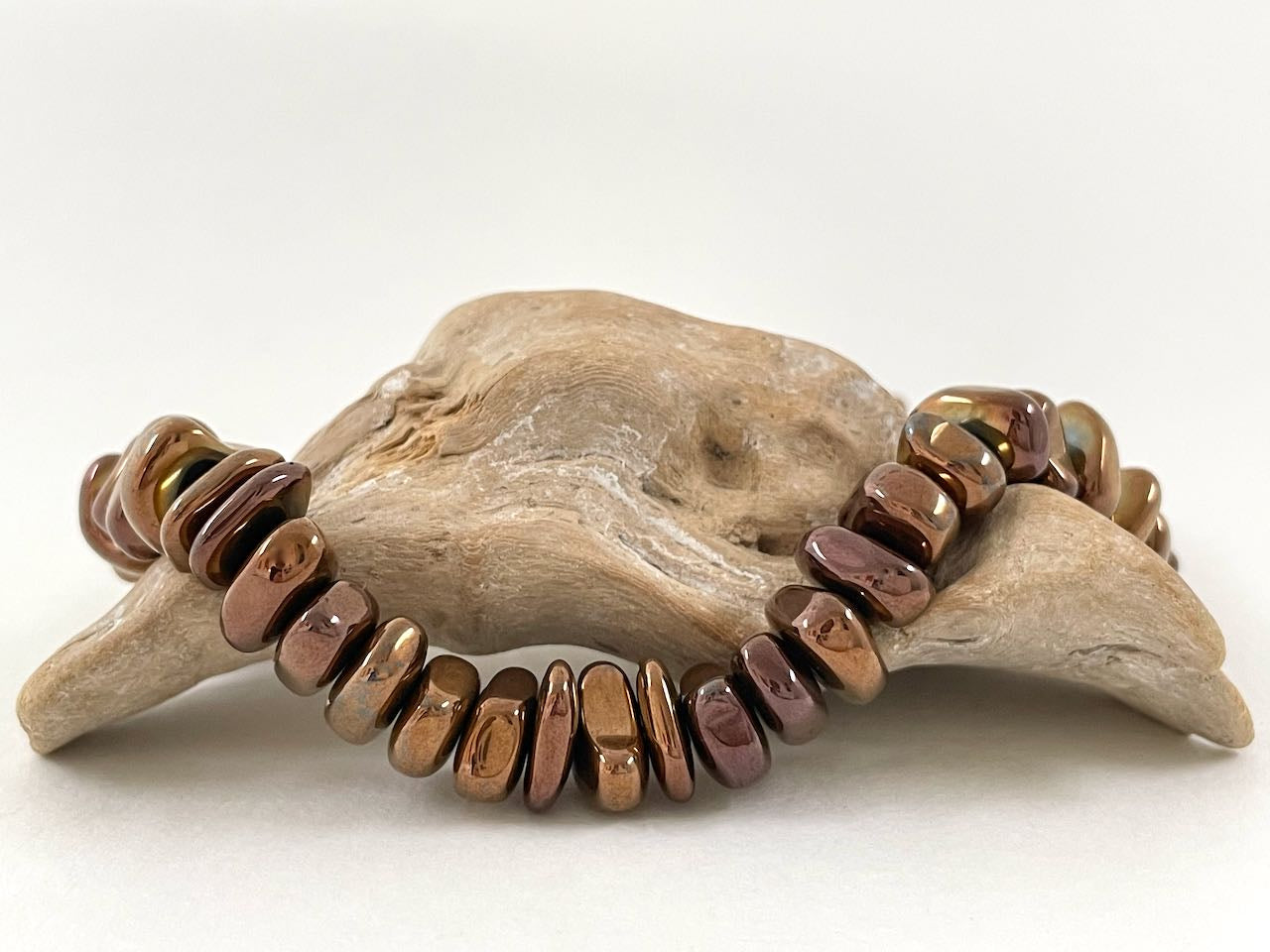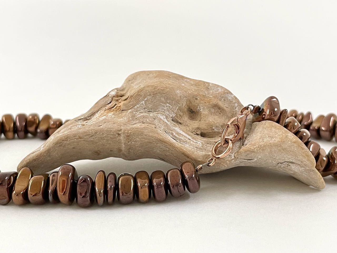 Setze ein Statement von Stil und Geschmack! Die kupferfarbenen Perlen vom Hämatit werden die Blicke der Anderen anziehen. Gib deinem Look einen Hauch von Eleganz! Je schlichter dein Outfit, desto mehr wird die Kette ihre Wirkung entfalten.