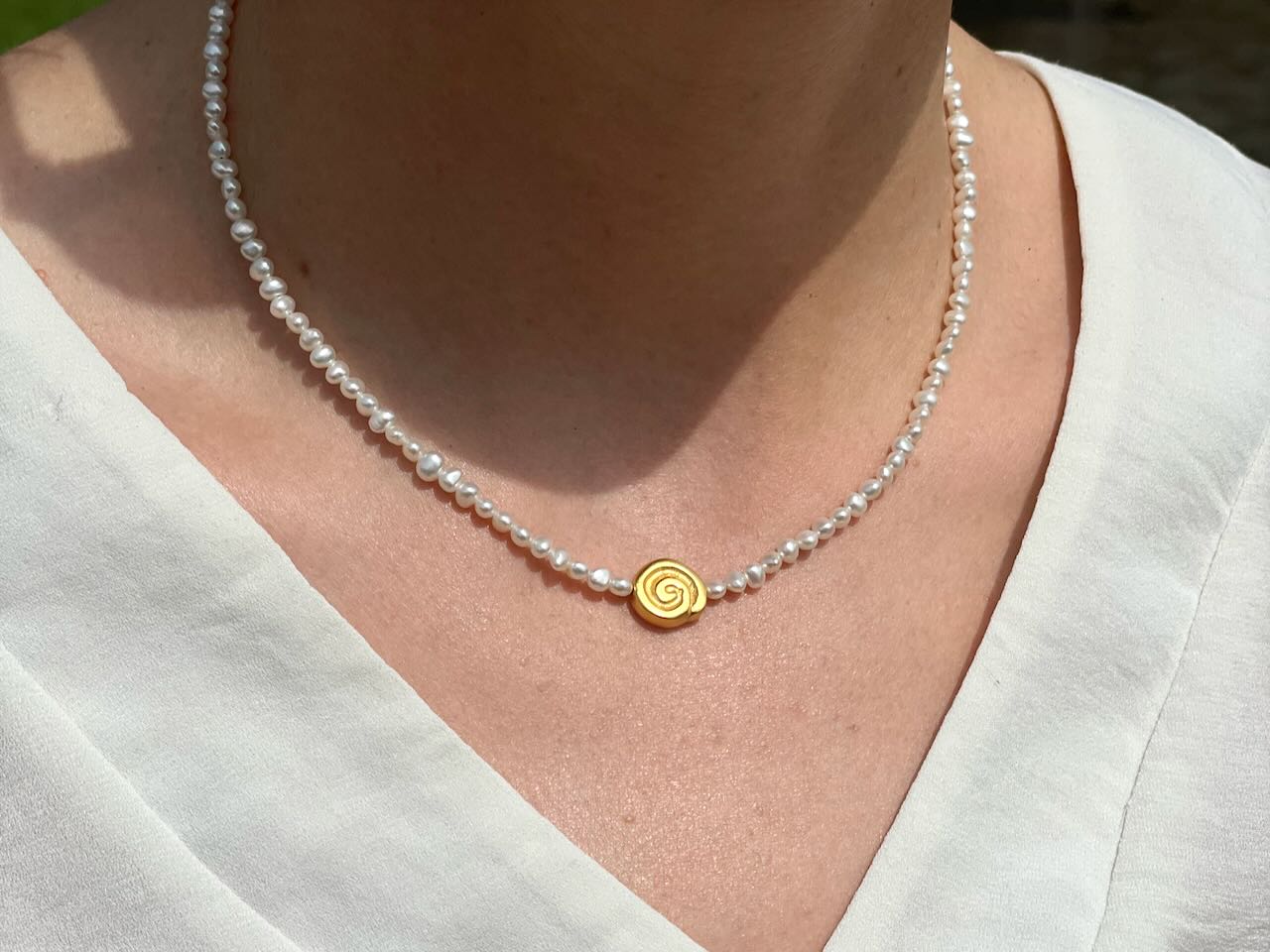 Zarte Perlenkette mit Goldmotiv aus der Inkazeit-Perlenkette Verona