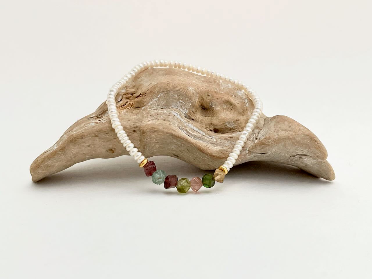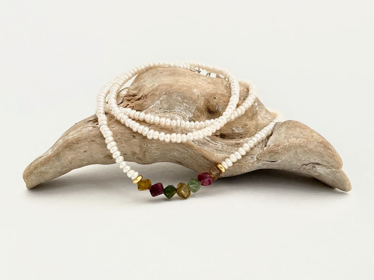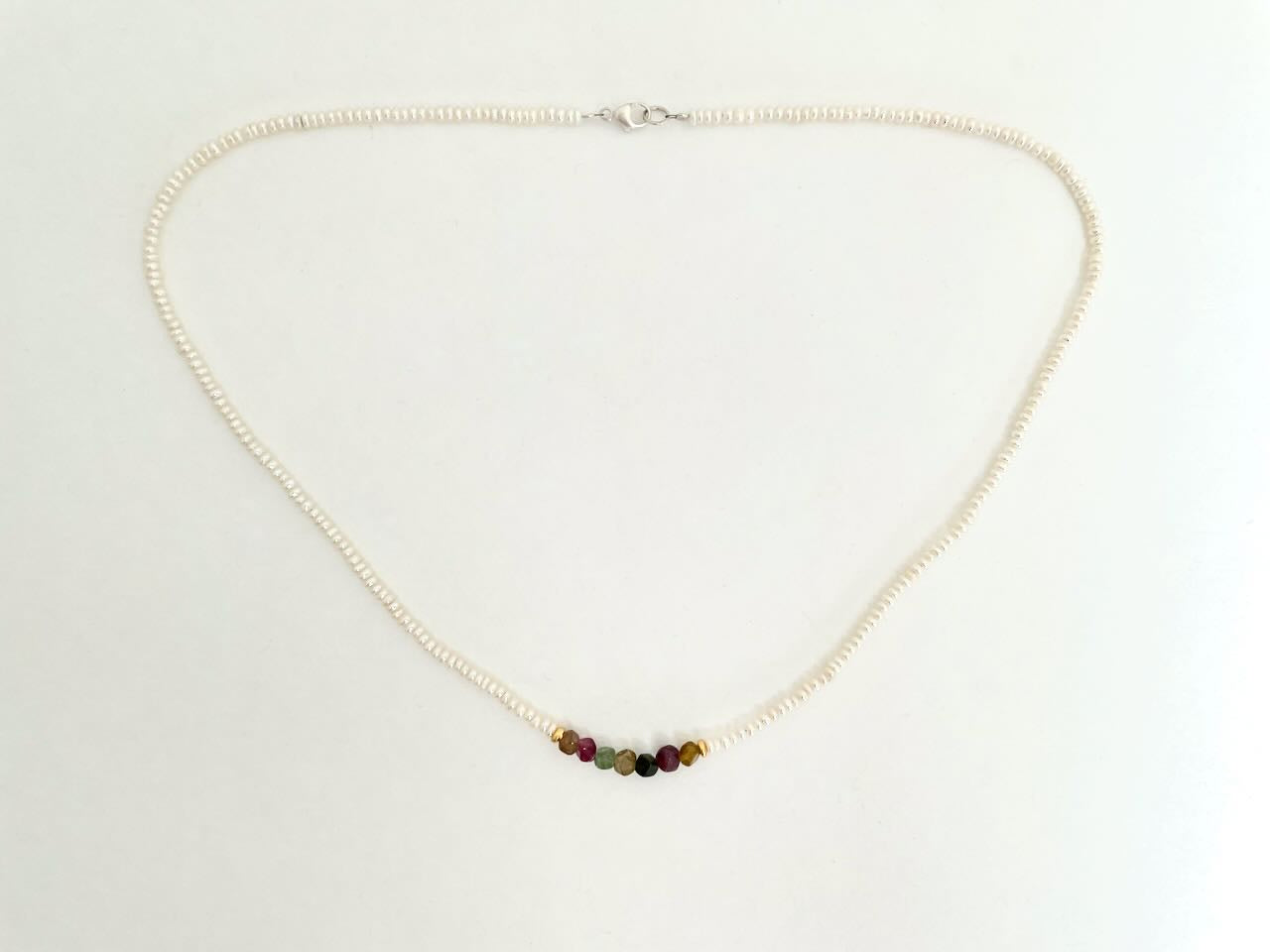 Zierliche Perlenkette mit kleinen, bunten Turmalinen - Perlenkette Naomi