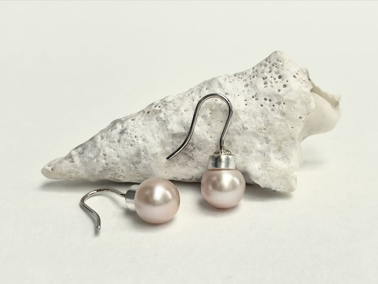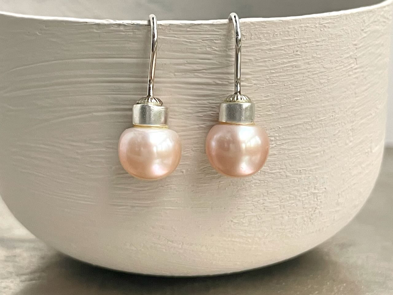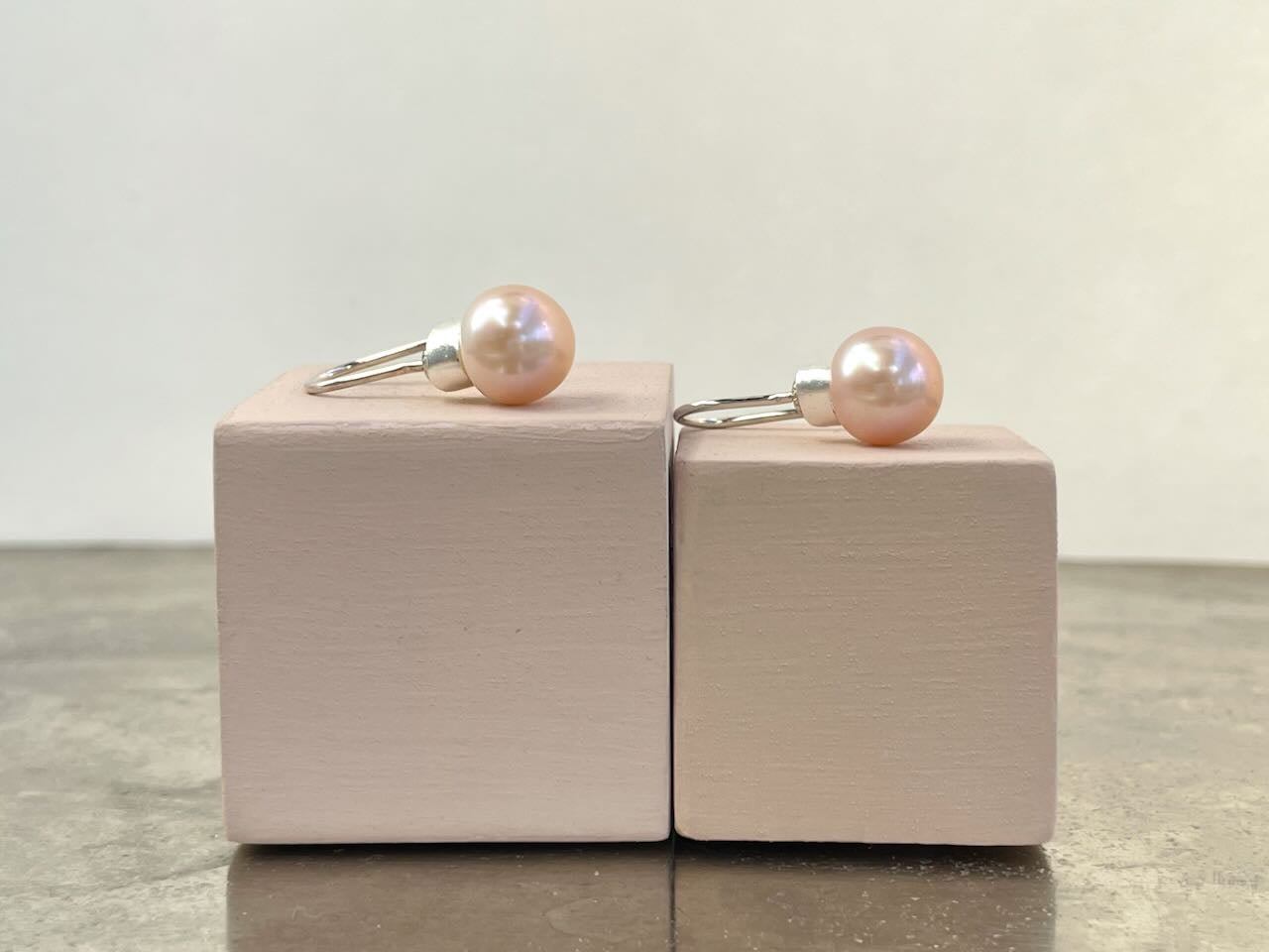 Rosé Süßwasserperle von 8 x 9 mm, Silberteil von 4 x 6 mm