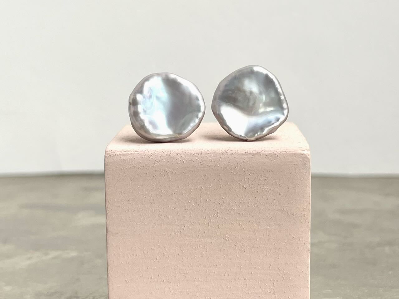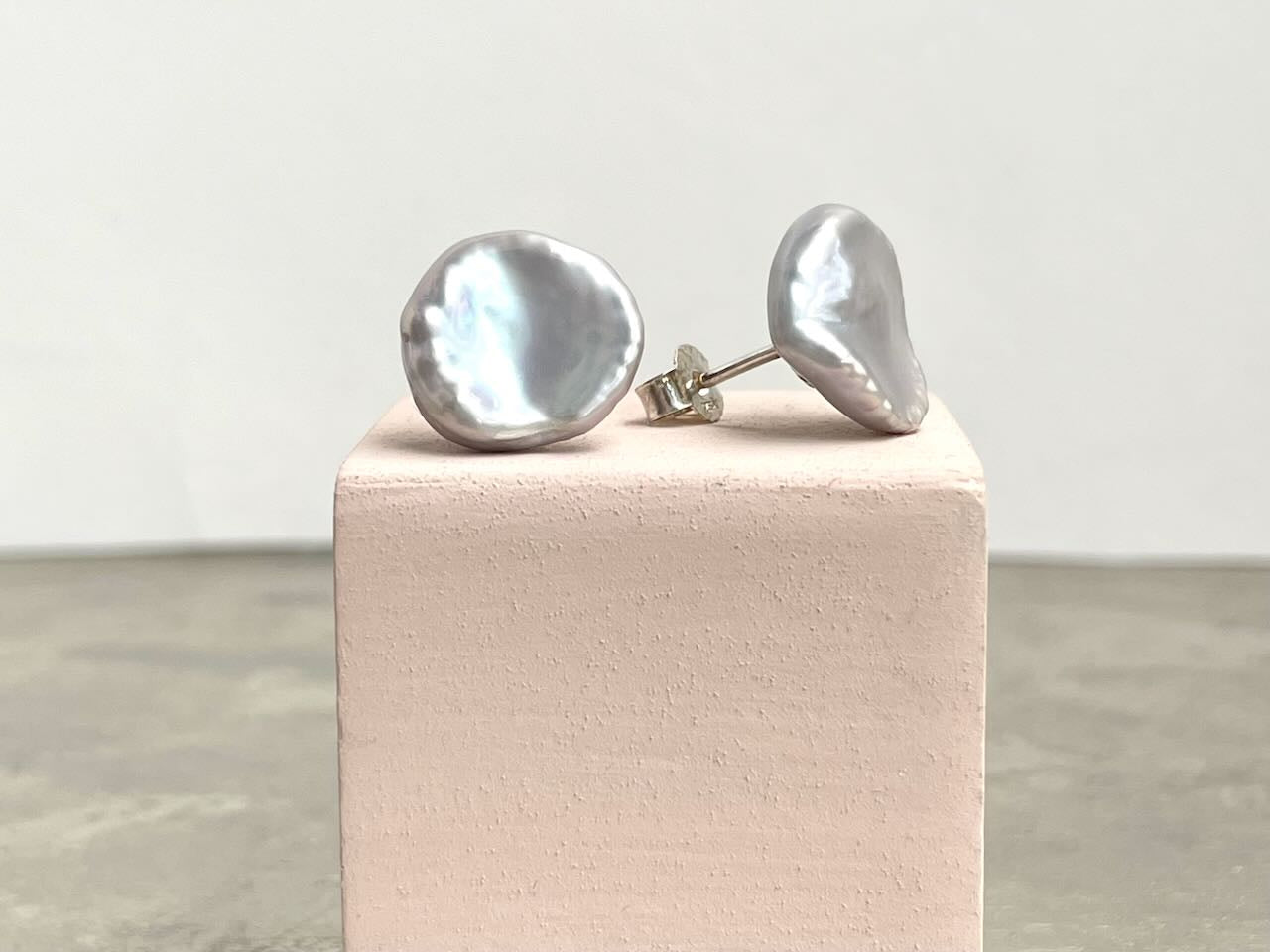 Wunderschöne Ohrstecker mit grauen Keshi-Perlen-Ohrstecker Petunia