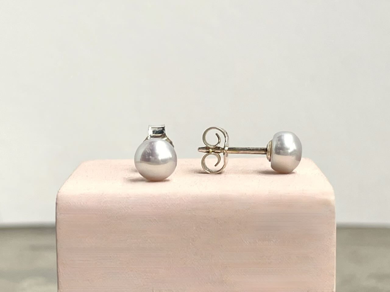 Perlohrstecker mit echten, weißen Perlen- klein und fein - Paloma 5 mm