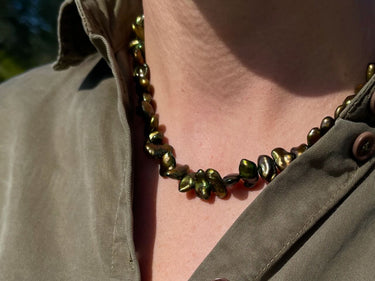Bezaubernde Perlenkette aus olivgrünen Keshi-Perlen -Perlenkette Nadja