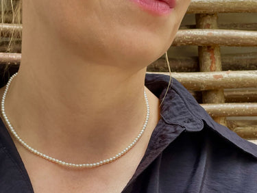 Halskette aus edlen weißen mini Perlen - Perlenkette Vanesssa
