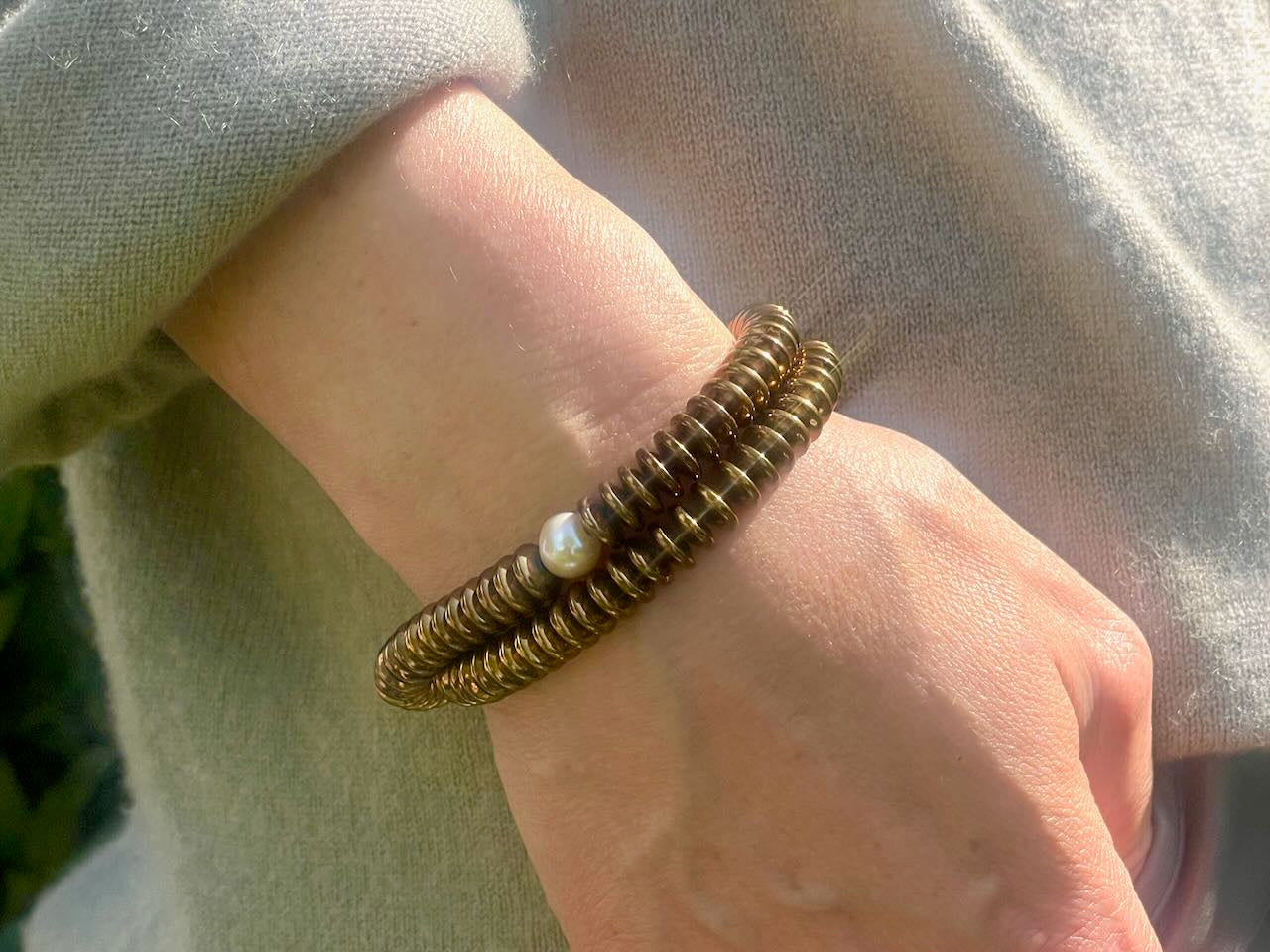 Armband aus kupferfarbenen Steinen mit Perle - Armband Leticia