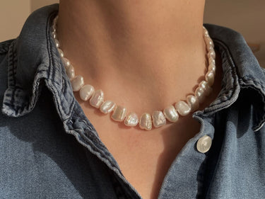 Edle Halskette aus hellen großen Keshiperlen - Perlenkette Valea