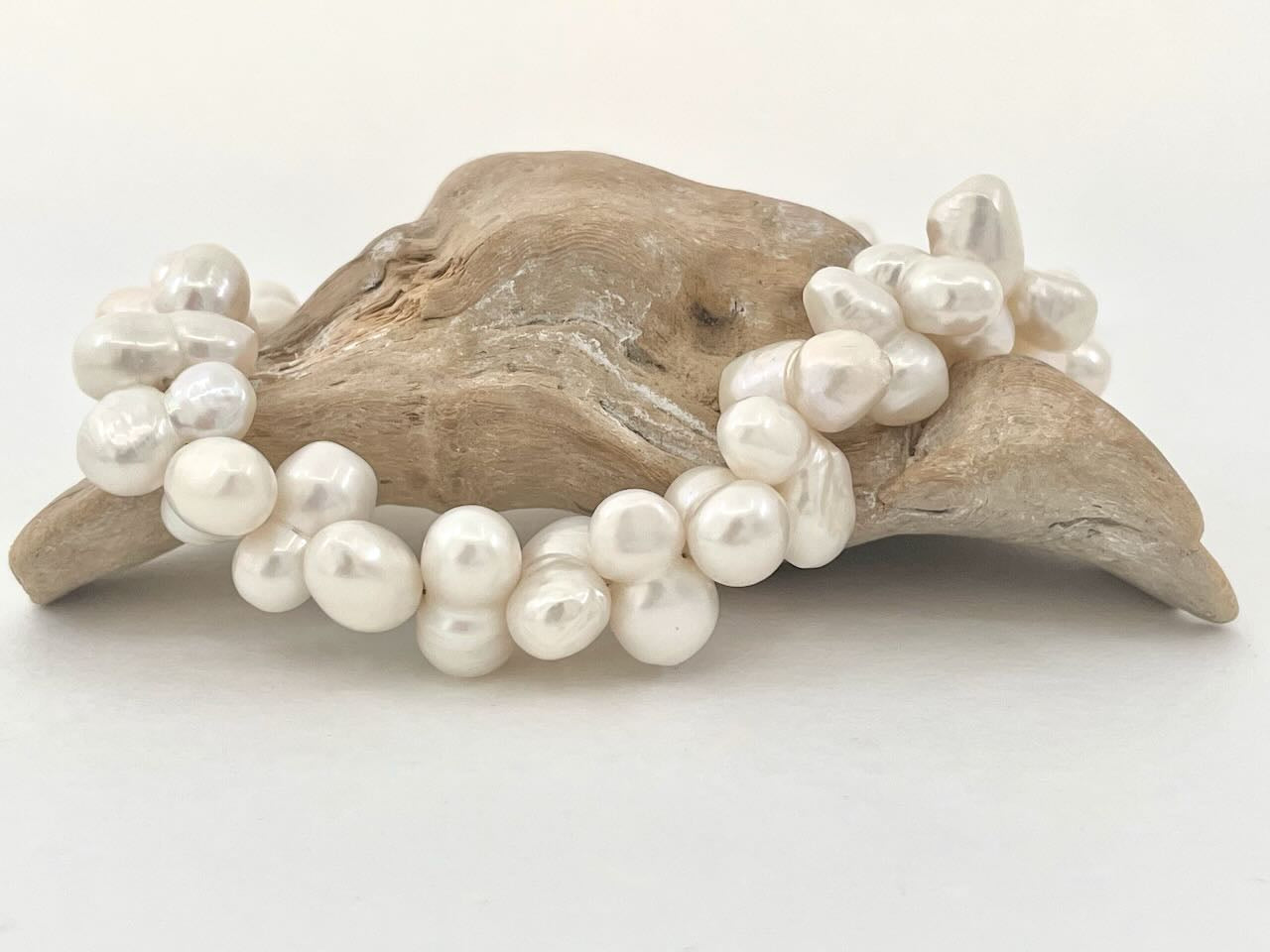 Wunderschöne, barocke Perlen bilden bei dieser einzigartigen Halskette einen harmonischen Strang, der wie aus einem Guss wirkt. Dank ihrer besonderen, natürlichen Form schieben sich die Perlen elegant ineinander und erzeugen eine faszinierende Struktur voller Bewegung und Charakter. Jede Perle ist ein kleines Unikat – zusammen lassen sie einen kraftvollen, ausdrucksstarken Perlenstrang entstehen, der sofort ins Auge fällt.