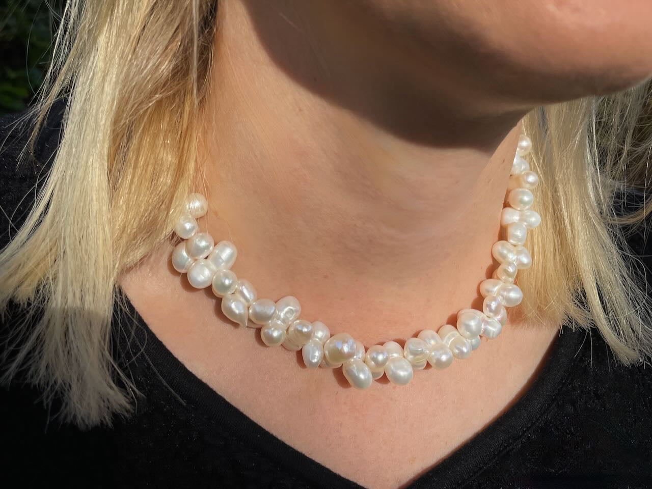 Diese handgefertigte Perlenkette ist perfekt für alle, die echte Perlen, besondere Formen und einen luxuriösen Look lieben. Ob im Alltag oder zu besonderen Anlässen – diese Kette wird garantiert bewundernde Blicke auf sich ziehen und jedes Outfit veredeln. Ein ganz besonderes Einzelstück!