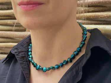 Hochwertige Halskette aus Keshi-Perlen in Petrol - Perlenkette Nanna