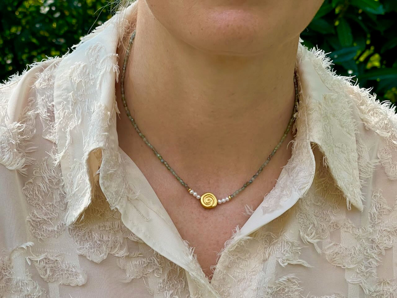 Verspielte Halskette aus feinen Steinen und Perlen - Steinkette Tessa