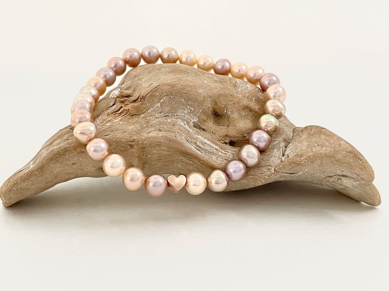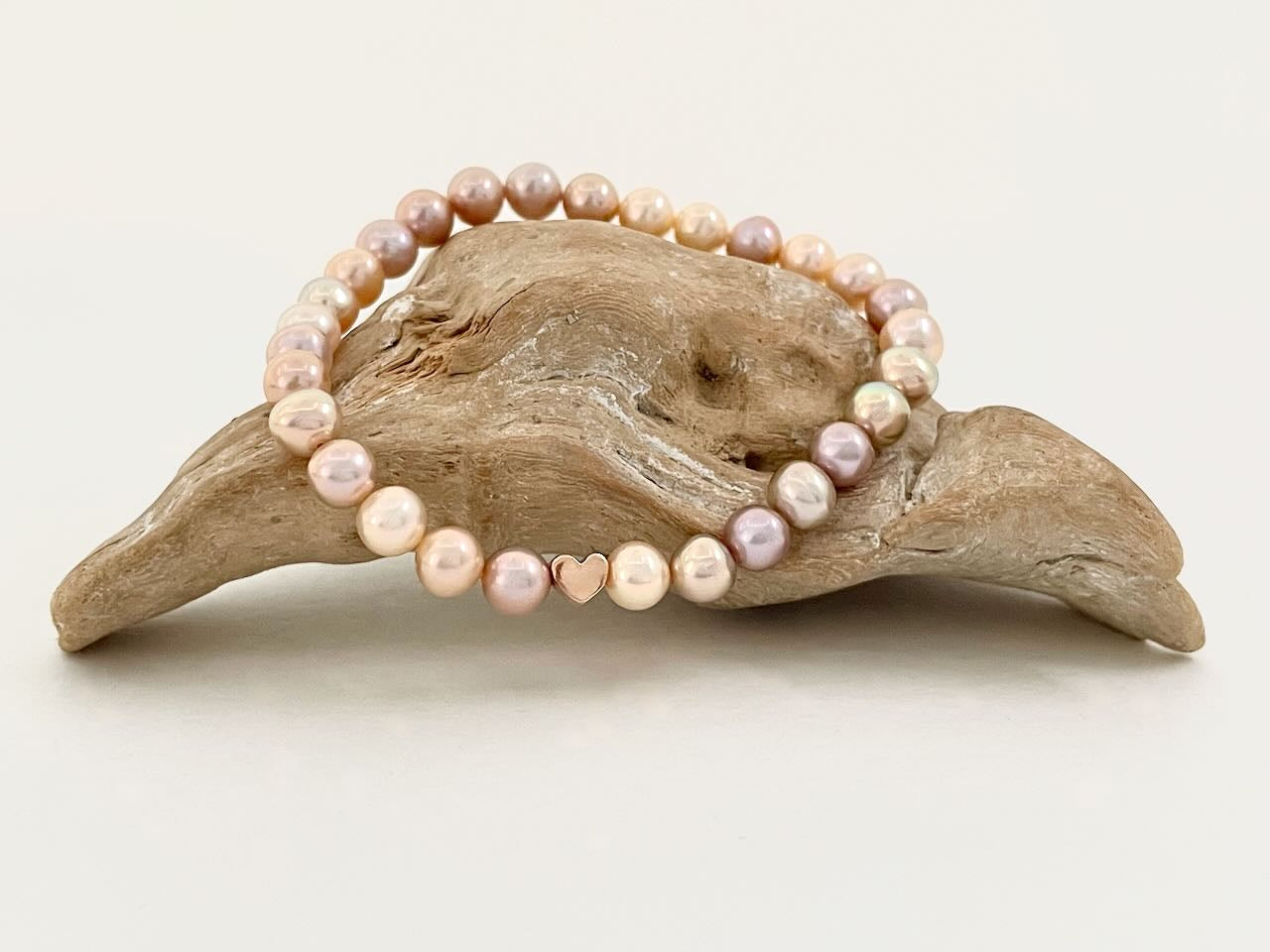 Zartes Armband aus rosa Süßwasserperlen mit kleinem Herz- Armband Anna